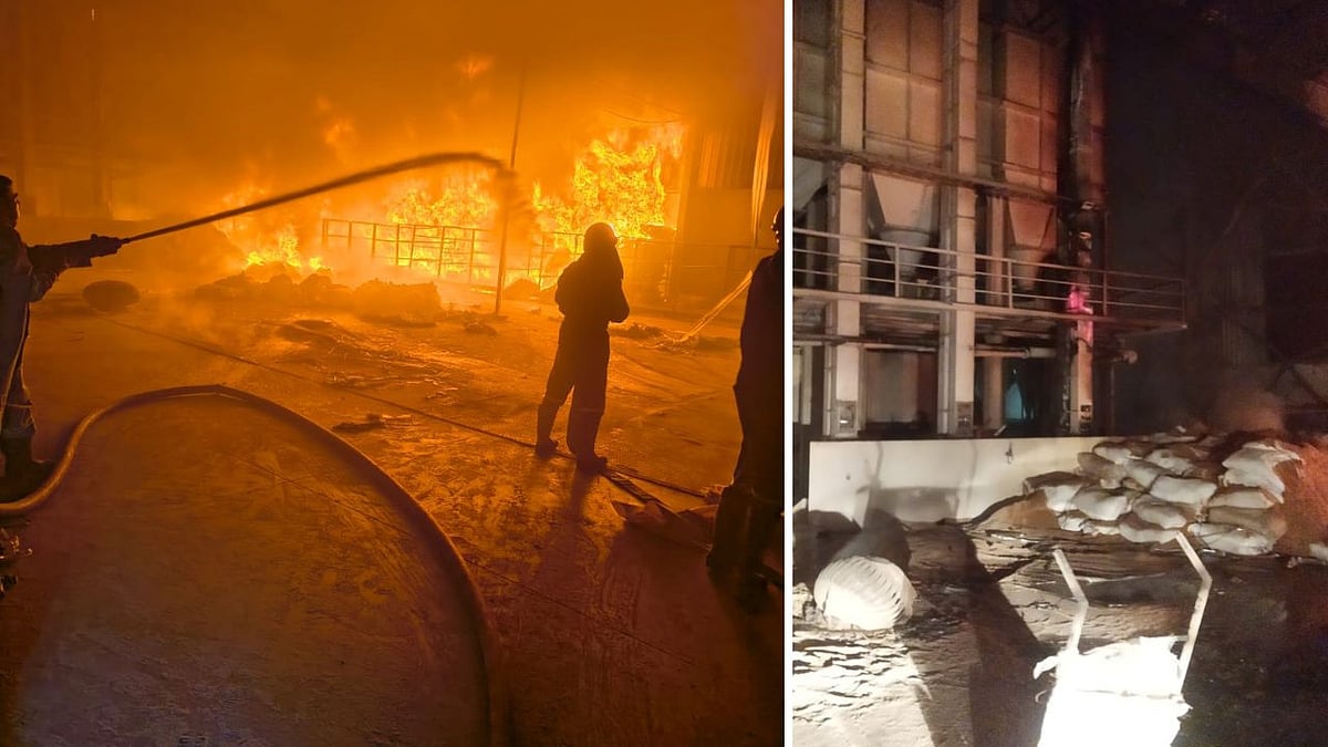 Controlling the blaze proved difficult due to the nature of the raw materials inside. Firefighters initially attempted to douse the flames from the ground, but the fire spread through stored dust and feed.