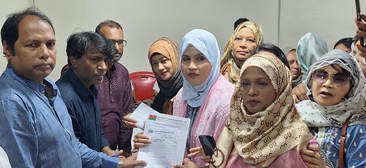 ত্রয়োদশ জাতীয় সংসদের সংরক্ষিত নারী আসনে দলীয় মনোনয়ন পেতে কেন্দ্রীয় কার্যালয় থেকে ফরম সংগ্রহ করছেন বিএনপির নেত্রীরা। নয়াপল্টন, ঢাকা। ১০ এপ্রিলএর কিছুক্ষণ পর একই জায়গায় প্রতিবেদক কথা বলেন জাতীয়তাবাদী মহিলা দলের সহত্রাণবিষয়ক সম্পাদক নুরুন্নাহার রেজার সঙ্গে। তিনি জাতীয়তাবাদী তাঁতী দলের ঢাকা মহানগর দক্ষিণের আহ্বায়ক প্রয়াত কাজী রেজাউল করিমের সহধর্মিণী।